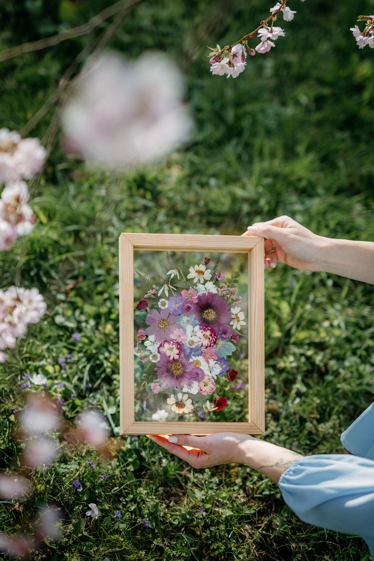 Vytvárame kvetinové a lesné obrázky, ktoré ukladáme do ručne vyrábaných drevených rámov.
