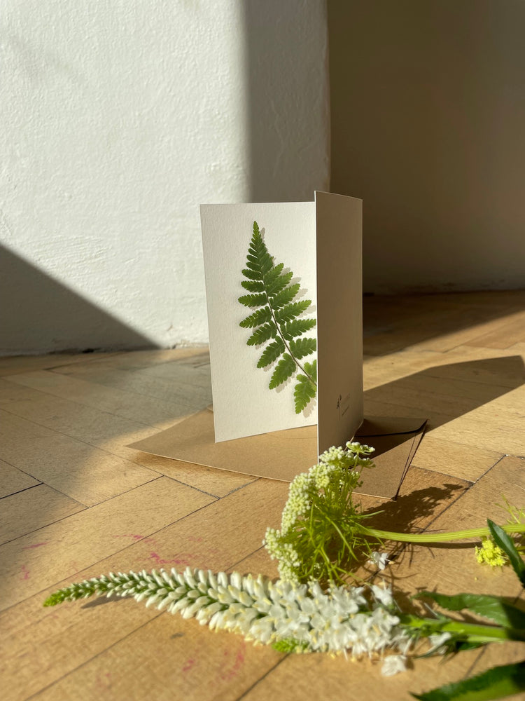 Potěšte své blízké květinovým přáním s pravou vylisovanou kapradinou umístěnou uvnitř přání z přírodního tvrdého papíru. Přední i druhá polovina přání je čistá pro napsání vzkazu od srdce. Kapradiny mohou být různého druhu. Darujte jej spolu s obrazem nebo jen tak. ❤️