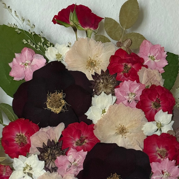 Použité květiny a rostliny jsou skutečné, ručně sbírané a šetrně lisované, aby si zachovaly svou přirozenou strukturu, jemnost i barevnost. 🌿 Následně jsou s citem aranžovány do jedinečné kompozice – každý obraz je originál, žádné dva kusy nejsou stejné.