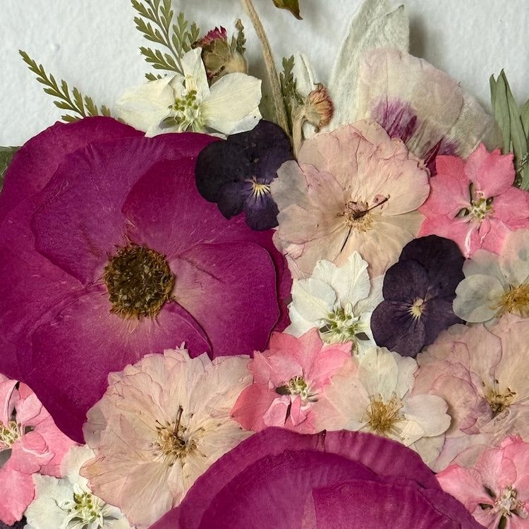Použité květiny a rostliny jsou skutečné, ručně sbírané a šetrně lisované, aby si zachovaly svou přirozenou strukturu, jemnost i barevnost. 🌿 Následně jsou s citem aranžovány do jedinečné kompozice – každý obraz je originál, žádné dva kusy nejsou stejné.