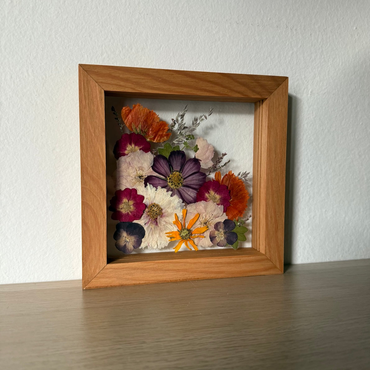 Přesně to jsou naše obrazy. Zakládáme si na originalitě a kvalitě, proto je každý náš obraz originál z pravých vylisovaných lokálních květů zarámovaných do ručně dělaných masivních dřevěných rámů.