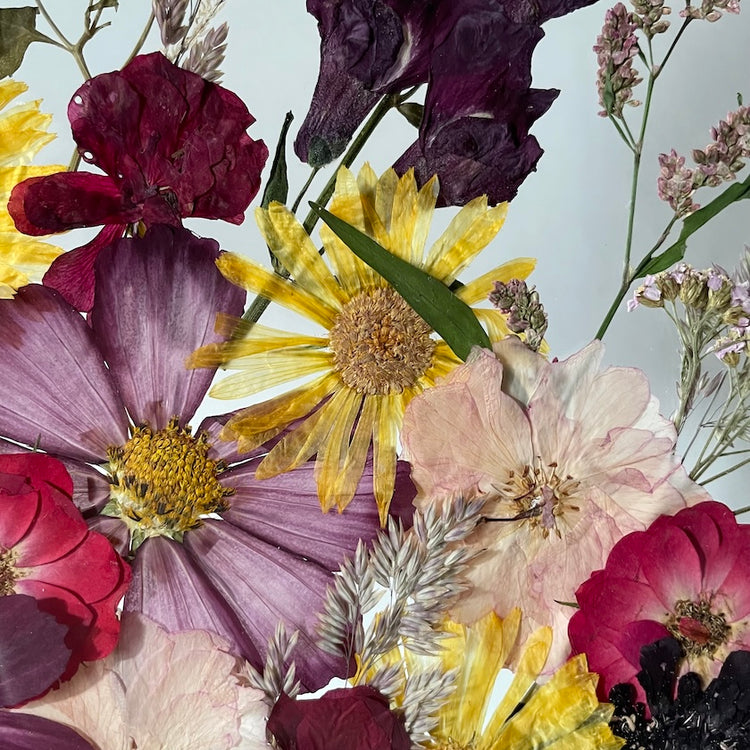 Přesně to jsou naše obrazy. Zakládáme si na originalitě a kvalitě, proto je každý náš obraz originál z pravých vylisovaných lokálních květů zarámovaných do ručně dělaných masivních dřevěných rámů.