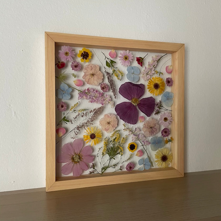 Použité květiny a rostliny jsou skutečné, ručně sbírané a šetrně lisované, aby si zachovaly svou přirozenou strukturu, jemnost i barevnost. 🌿 Následně jsou s citem aranžovány do jedinečné kompozice – každý obraz je originál, žádné dva kusy nejsou stejné.