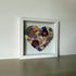 Květinový ručně vyrobený obraz s květy ve fialových, růžových a modrých barvách, které rostou do tvaru srdce. Mezi květy najdete květy třešní, růže a mnoho dalšího.