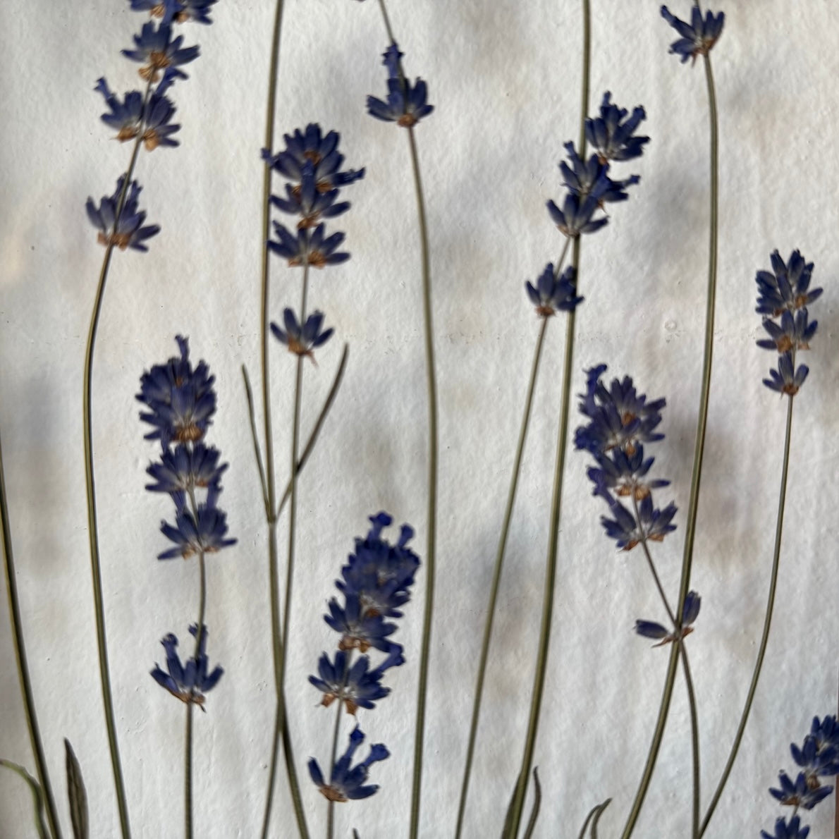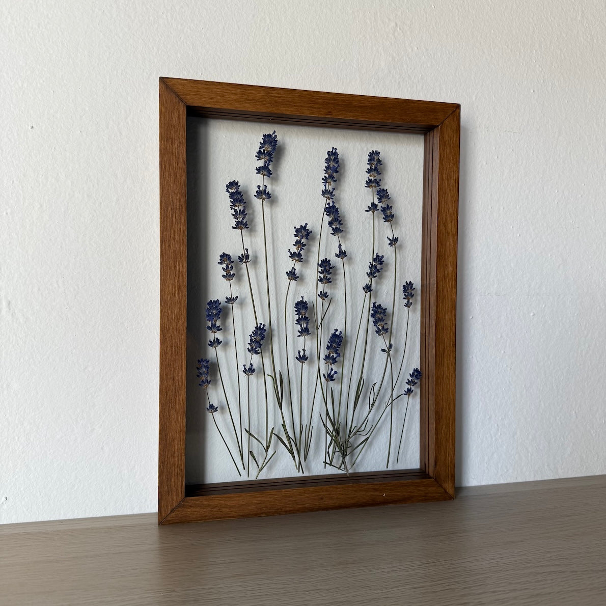 Květinový ručně vyrobený obraz s květy levandulí, které rostou ze středu obrazu.