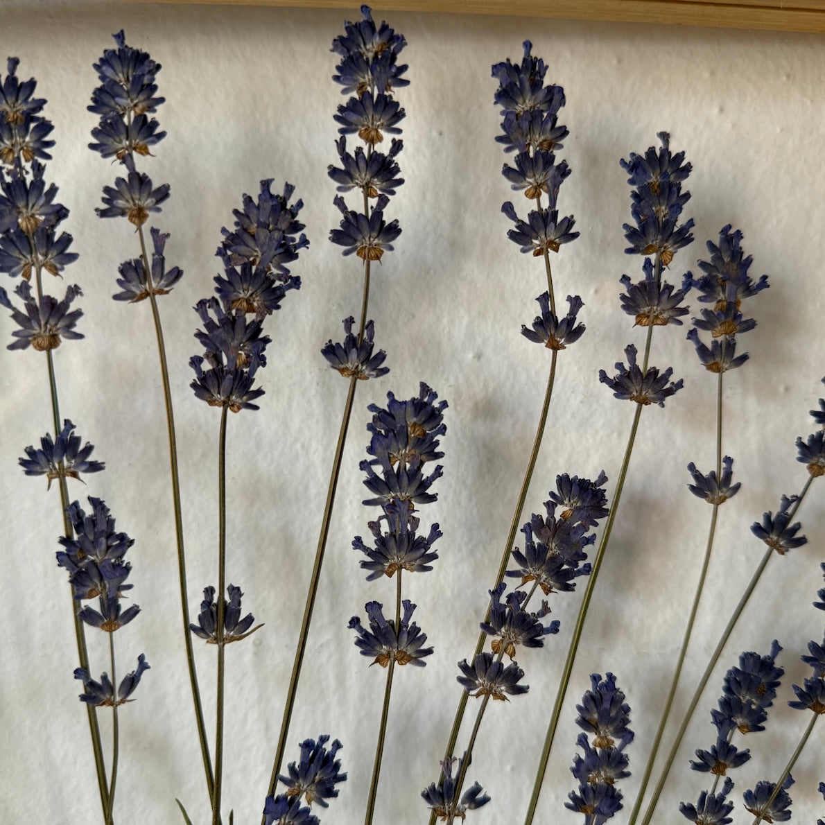 Luční ručně vyrobený obraz s květy levandulí, které rostou ze středu obrazu.