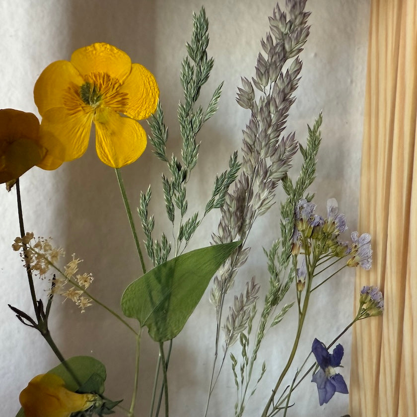 Luční ručně vyrobený obraz s květy z luk a zahrad.