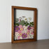 Květinový ručně vyrobený obraz s květy v růžových a bílých barvách, které rostou ze spodu obrazu. Mezi květy najdete růže, krásenky, květy třešní a mnoho dalšího.