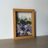Květinový ručně vyrobený obraz s květy v modrých, fialových a bílých barvách, které rostou ze spodu obrazu. Mezi květy najdete hortenzie, ostrožky, macešky a mnoho dalšího.