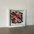 Květinový ručně vyrobený obraz s květy v růžových, červených a fialových barvách, které rostou ze středu obrazu. Mezi květy najdete květy třešní, krásenky, muškáty a mnoho dalšího.