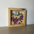 Květinový ručně vyrobený obraz s květy žlutých, fialových a modrých barviček, které rostou ze spodu obrazu. Mezi květy najdete krásenky, chryzantému, ostrožky a mnoho dalšího.
