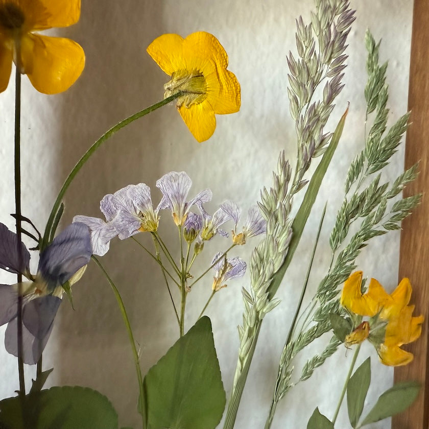 Luční ručně vyrobený obraz s květy z luk a zahrad.