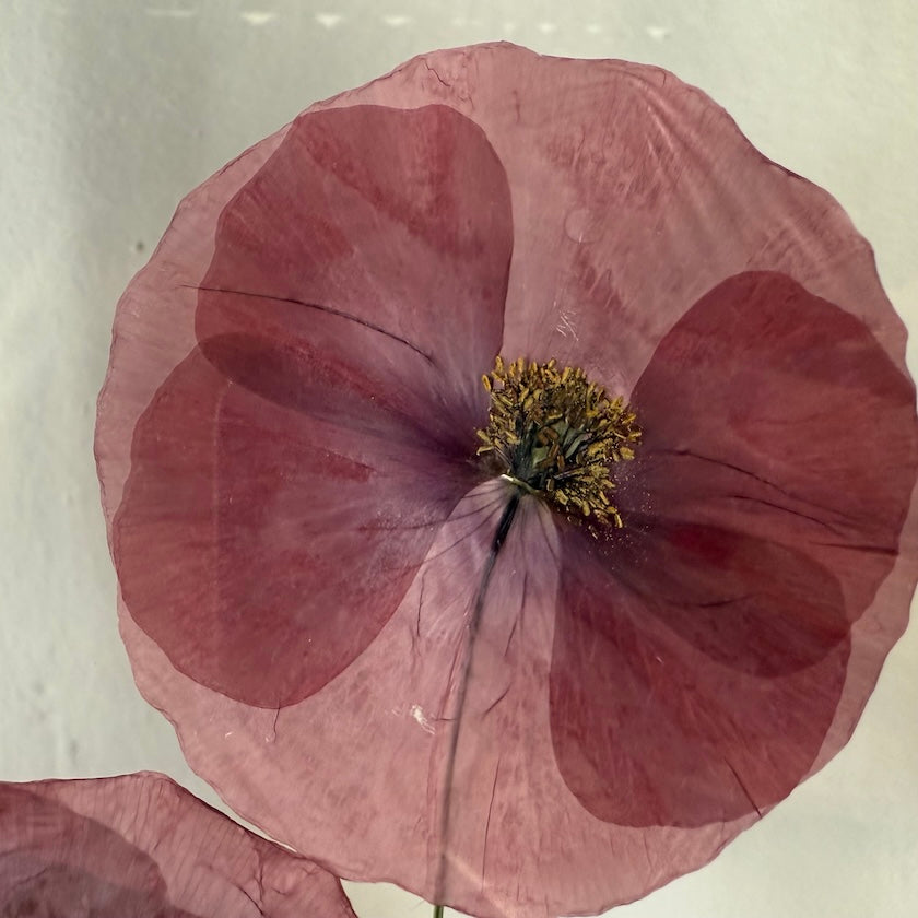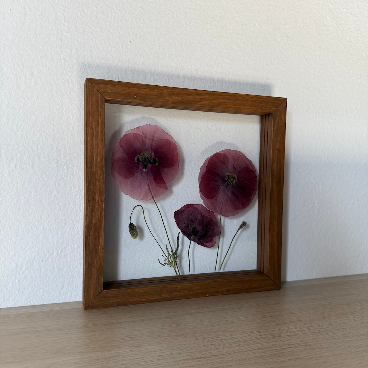 Květinový ručně vyrobený obraz s květy máků, které rostou ze středu obrazu.