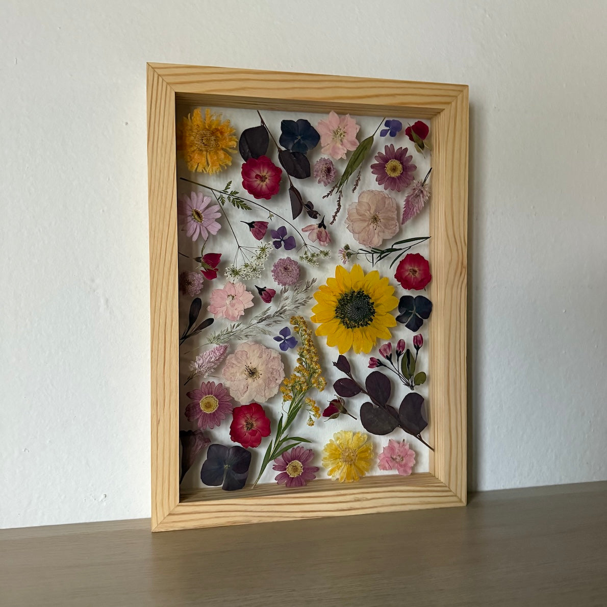 Přesně to jsou naše obrazy. Zakládáme si na originalitě a kvalitě, proto je každý náš obraz originál z pravých vylisovaných lokálních květů zarámovaných do ručně dělaných masivních dřevěných rámů.