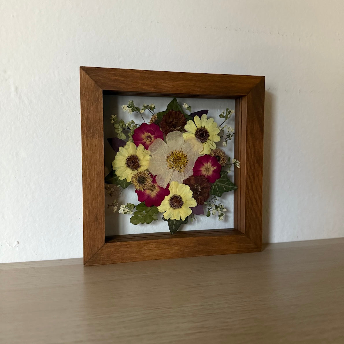 Přesně to jsou naše obrazy. Zakládáme si na originalitě a kvalitě, proto je každý náš obraz originál z pravých vylisovaných lokálních květů zarámovaných do ručně dělaných masivních dřevěných rámů.
