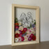 Květinový ručně vyrobený kreslený obraz s květy červených, modrých a růžových odstínů.
