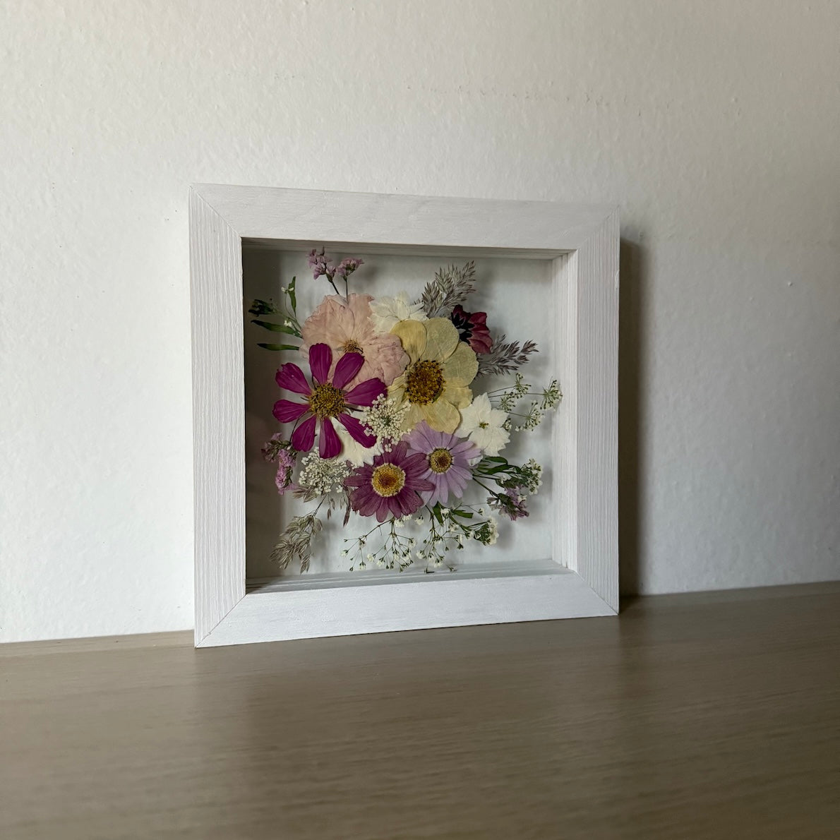 Přesně to jsou naše obrazy. Zakládáme si na originalitě a kvalitě, proto je každý náš obraz originál z pravých vylisovaných lokálních květů zarámovaných do ručně dělaných masivních dřevěných rámů.