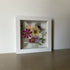 Květinový ručně vyrobený obraz s květy růžových a bílých barviček, které rostou ze středu obrazu. Mezi květy najdete krásenky, květy třešní a mnoho dalšího.