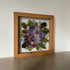 Květinový ručně vyrobený obraz s květy v modrých a fialových barvách, které rostou ze středu obrazu. Mezi květy najdete hortenzie, krásenku a mnoho dalšího.