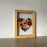 Květinový ručně vyrobený obraz s květy v růžových, žlutých, modrých a červených barvách, které rostou ve tvaru srdce ze středu obrazu. Mezi květy najdete květy hortenzie, růže, ostrožky a mnoho dalšího.