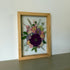 Květinový ručně vyrobený obraz s květy ve fialových, modrých a růžových barvách, které rostou ze středu obrazu. Mezi květy najdete krásenky, ostrožky, růže a mnoho dalšího.