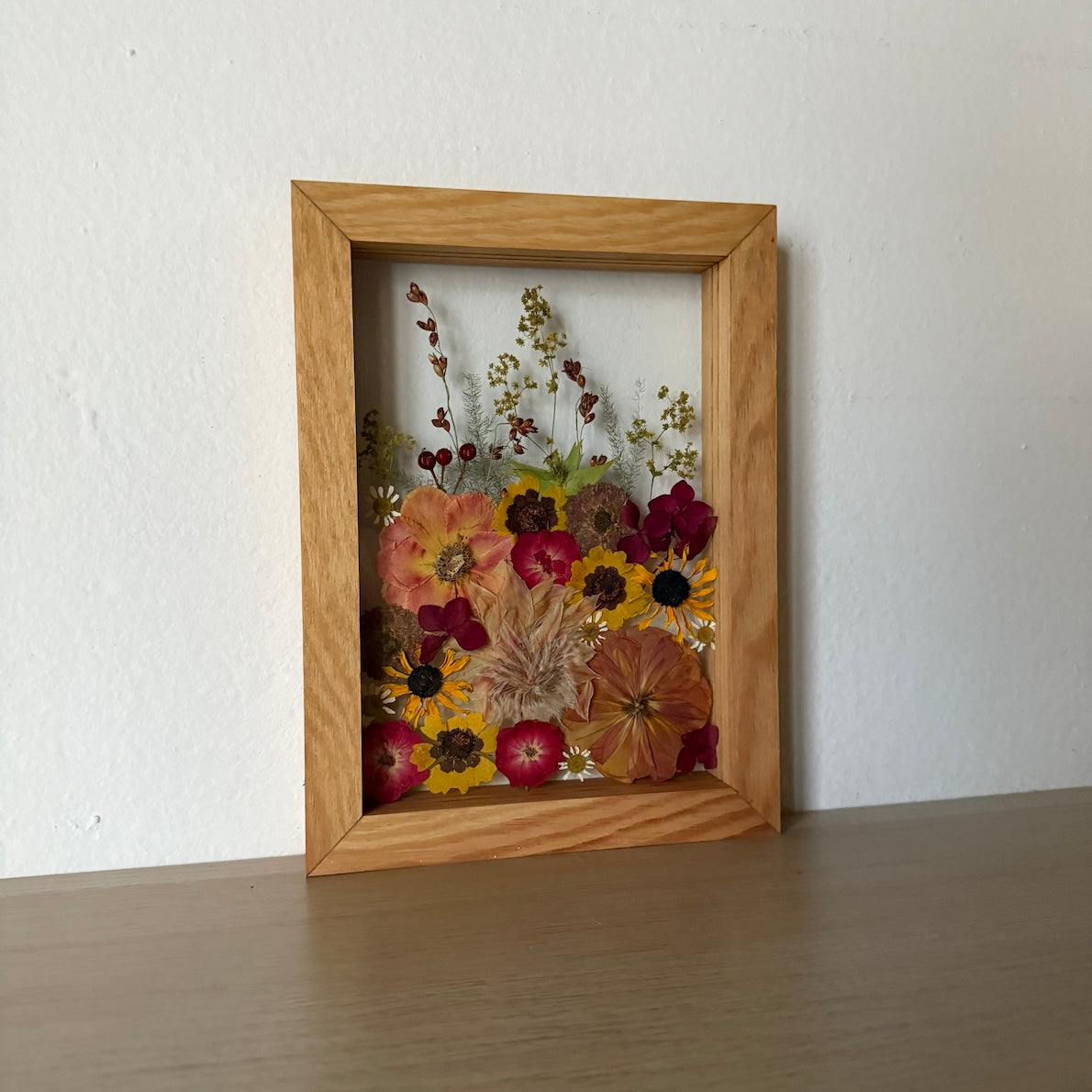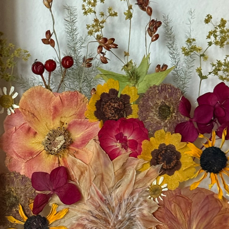 Přesně to jsou naše obrazy. Zakládáme si na originalitě a kvalitě, proto je každý náš obraz originál z pravých vylisovaných lokálních květů zarámovaných do ručně dělaných masivních dřevěných rámů.
