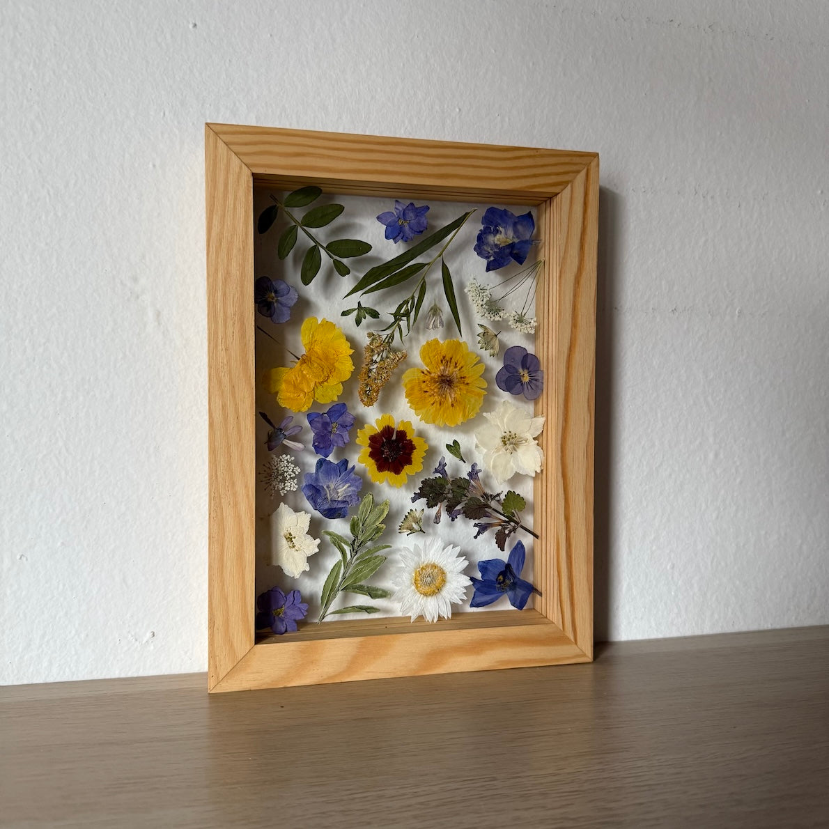 Přesně to jsou naše obrazy. Zakládáme si na originalitě a kvalitě, proto je každý náš obraz originál z pravých vylisovaných lokálních květů zarámovaných do ručně dělaných masivních dřevěných rámů.