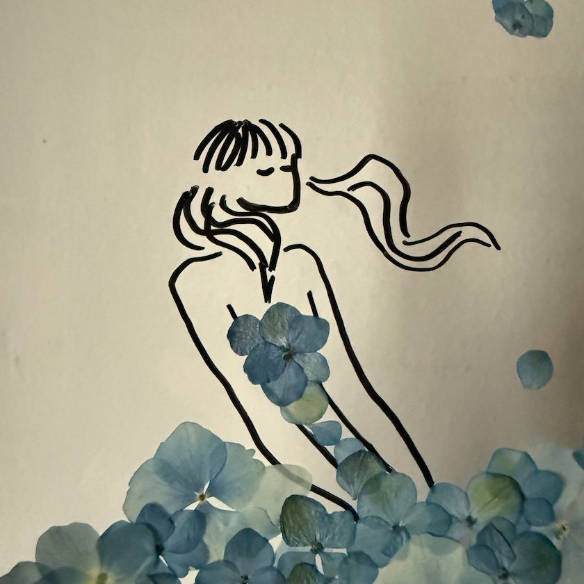 Květinový ručně vyrobený obraz s originální malovanou siluetou s květy v modrých barvách.