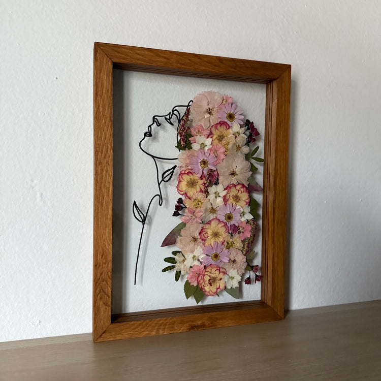 Použité květiny a rostliny jsou skutečné, ručně sbírané a šetrně lisované, aby si zachovaly svou přirozenou strukturu, jemnost i barevnost. 🌿 Následně jsou s citem aranžovány do jedinečné kompozice – každý obraz je originál, žádné dva kusy nejsou stejné.