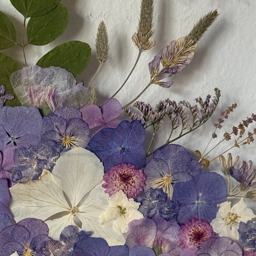 Použité květiny a rostliny jsou skutečné, ručně sbírané a šetrně lisované, aby si zachovaly svou přirozenou strukturu, jemnost i barevnost. 🌿 Následně jsou s citem aranžovány do jedinečné kompozice – každý obraz je originál, žádné dva kusy nejsou stejné.