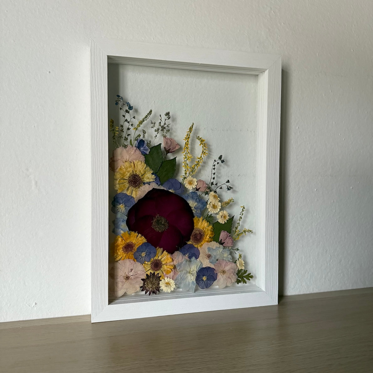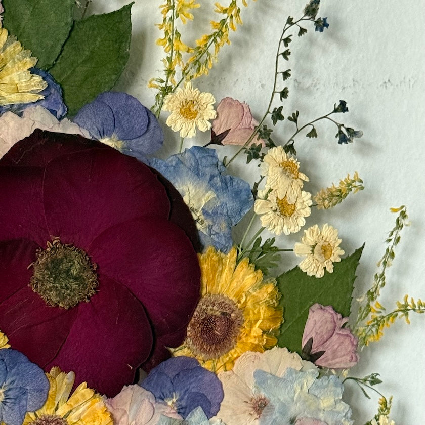 Použité květiny a rostliny jsou skutečné, ručně sbírané a šetrně lisované, aby si zachovaly svou přirozenou strukturu, jemnost i barevnost. 🌿 Následně jsou s citem aranžovány do jedinečné kompozice – každý obraz je originál, žádné dva kusy nejsou stejné.