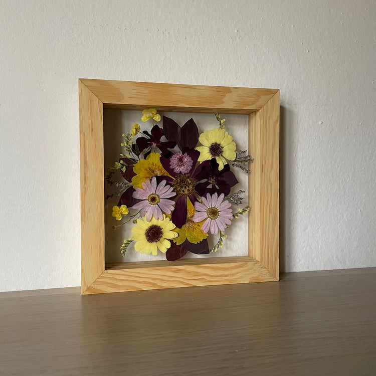 Přesně to jsou naše obrazy. Zakládáme si na originalitě a kvalitě, proto je každý náš obraz originál z pravých vylisovaných lokálních květů zarámovaných do ručně dělaných masivních dřevěných rámů.