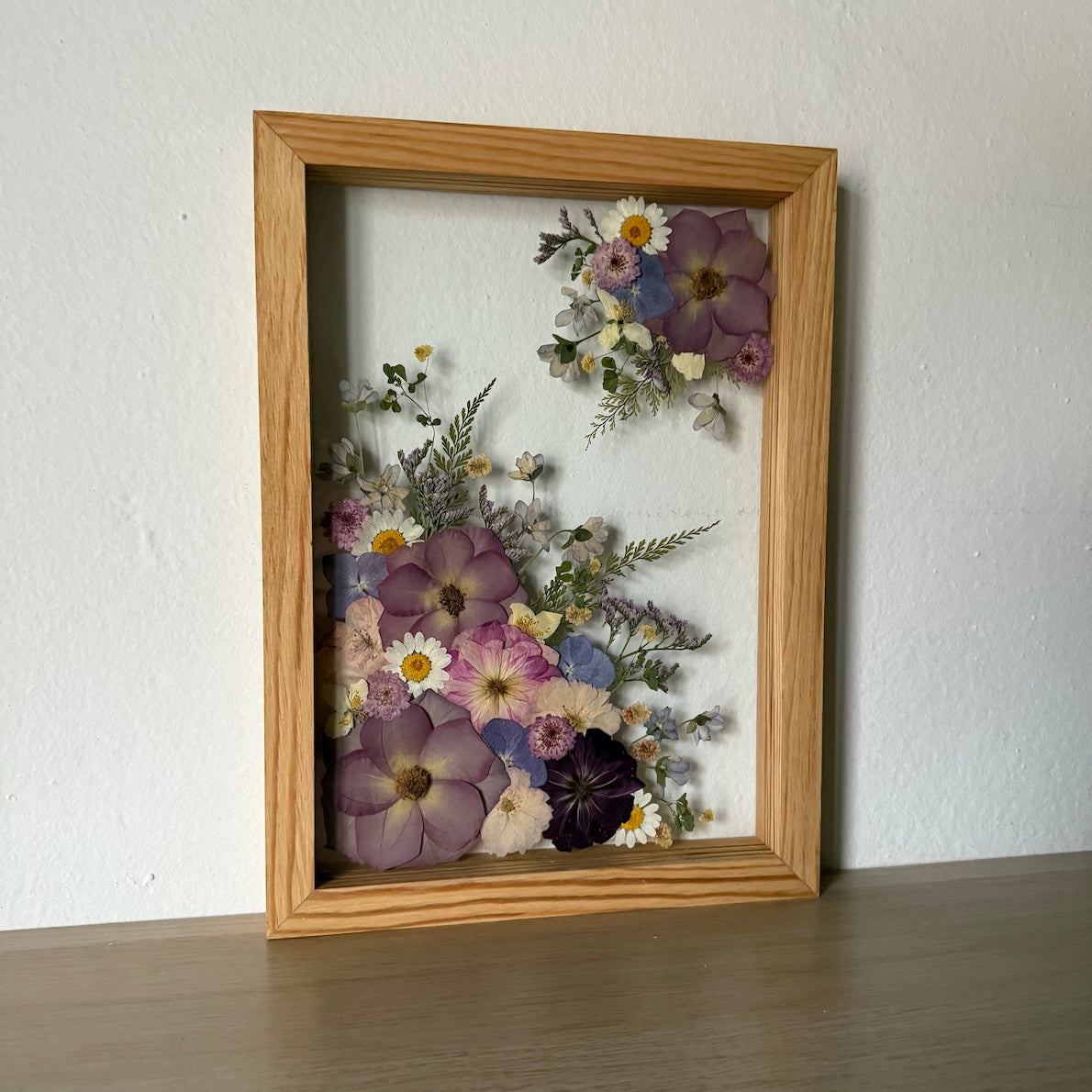 Použité květiny a rostliny jsou skutečné, ručně sbírané a šetrně lisované, aby si zachovaly svou přirozenou strukturu, jemnost i barevnost. 🌿 Následně jsou s citem aranžovány do jedinečné kompozice – každý obraz je originál, žádné dva kusy nejsou stejné.