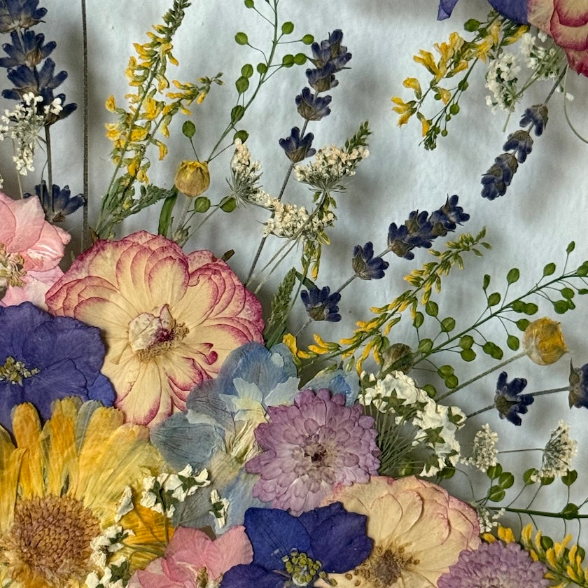Použité květiny a rostliny jsou skutečné, ručně sbírané a šetrně lisované, aby si zachovaly svou přirozenou strukturu, jemnost i barevnost. 🌿 Následně jsou s citem aranžovány do jedinečné kompozice – každý obraz je originál, žádné dva kusy nejsou stejné.