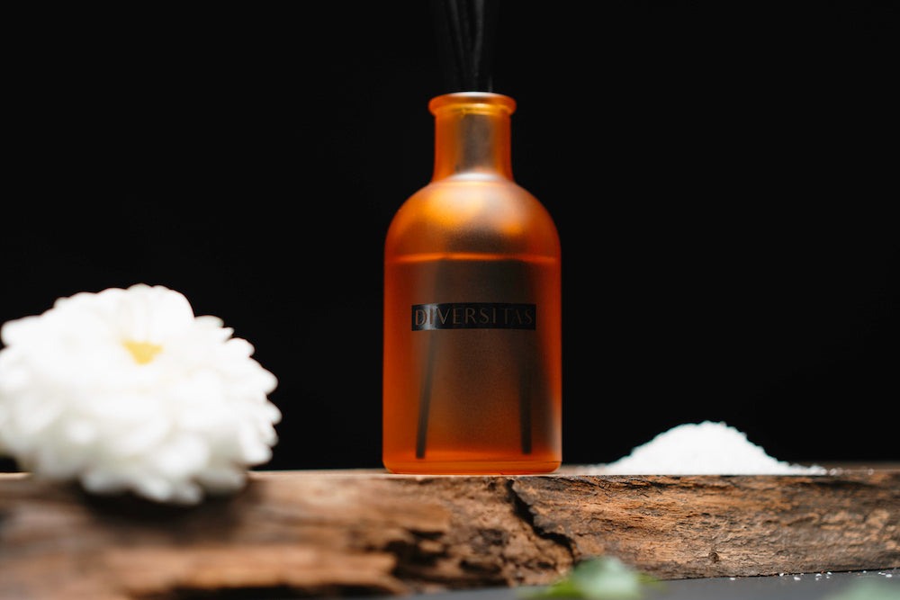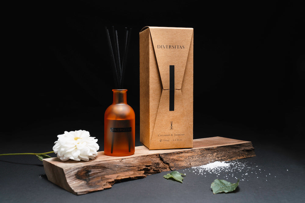 Difusér má matnou, do staro-oranžové laděnou lahvičku a několik černých bambusových tyčinek. Je tedy vhodný jako nenápadná a přitom příjemně vzhlížející dekorace.