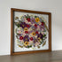Květinový ručně vyrobený obraz s květy v růžových, červených a modrých barvách, které rostou ze středu obrazu. Mezi květy najdete květy třešní, krásenky, růže a mnoho dalšího.