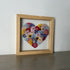 Květinový ručně vyrobený obraz s květy ve žlutých, červených a modrých barvách, které rostou do tvaru srdce. Mezi květy najdete krásnoočka, růže a mnoho dalšího.