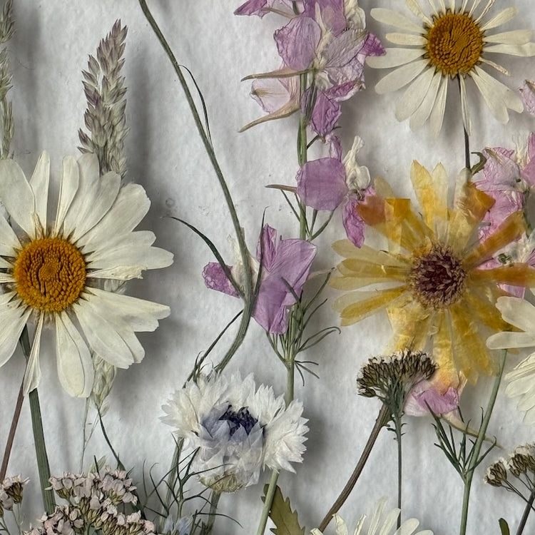 Použité květiny a rostliny jsou skutečné, ručně sbírané a šetrně lisované, aby si zachovaly svou přirozenou strukturu, jemnost i barevnost. 🌿 Následně jsou s citem aranžovány do jedinečné kompozice – každý obraz je originál, žádné dva kusy nejsou stejné.