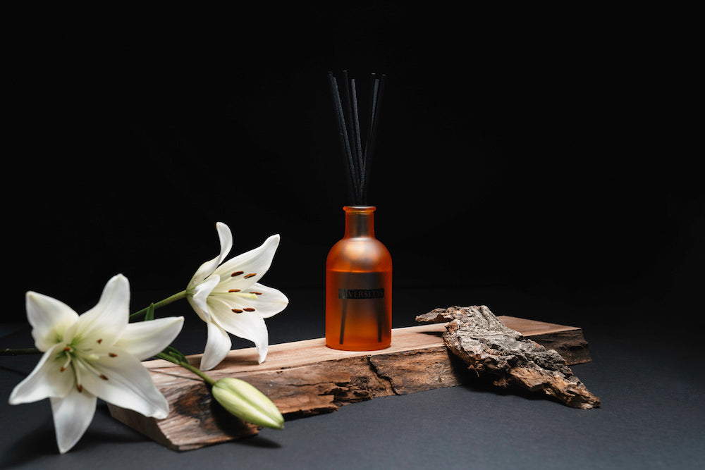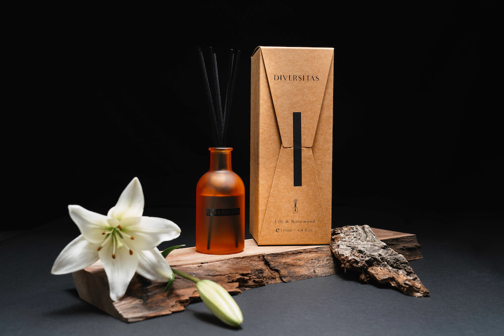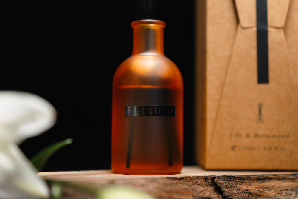 Difusér má matnou, do staro-oranžové laděnou lahvičku a několik černých bambusových tyčinek. Je tedy vhodný jako nenápadná a přitom příjemně vzhlížející dekorace.