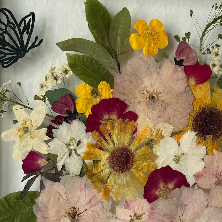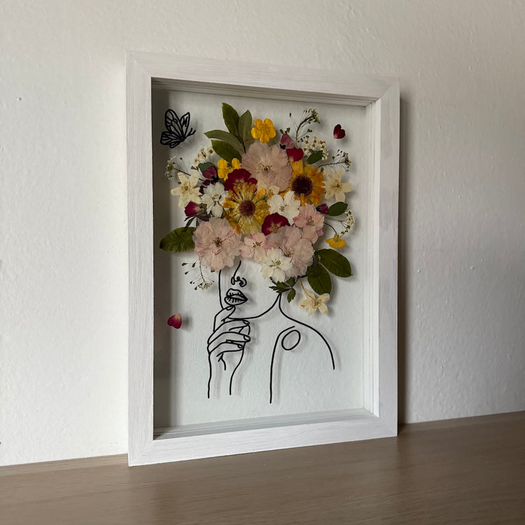 Použité květiny a rostliny jsou skutečné, ručně sbírané a šetrně lisované, aby si zachovaly svou přirozenou strukturu, jemnost i barevnost. 🌿 Následně jsou s citem aranžovány do jedinečné kompozice – každý obraz je originál, žádné dva kusy nejsou stejné.