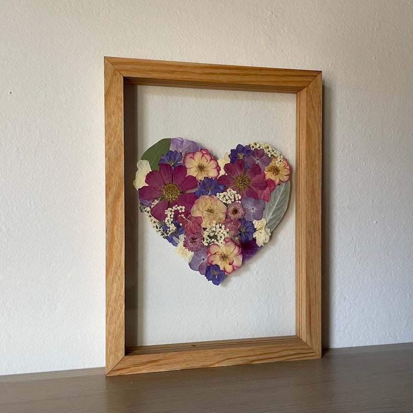 Květiny jsou zasazeny mezi skla a doplněny ručně vyráběným dřevěným rámem, který vzniká přímo v naší dílně. 🪵