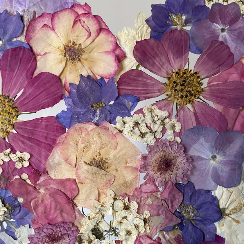 Použité květiny a rostliny jsou skutečné, ručně sbírané a šetrně lisované, aby si zachovaly svou přirozenou strukturu, jemnost i barevnost. 🌿 Následně jsou s citem aranžovány do jedinečné kompozice – každý obraz je originál, žádné dva kusy nejsou stejné.