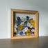 Květinový ručně vyrobený obraz s květy ve žlutých, modrých a bílých barvách, které rostou ze spodu obrazu. Mezi květy najdete macešky, krásnoočka, ostrožky a mnoho dalšího.