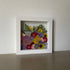 Květinový ručně vyrobený obraz s květy červených, modrých a žlutých barviček, které rostou ze spodu obrazu. Mezi květy najdete krásnoočka, růže a mnoho dalšího.