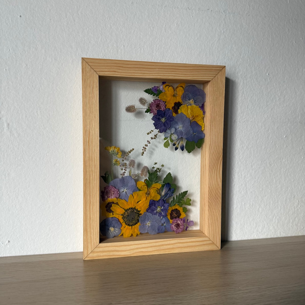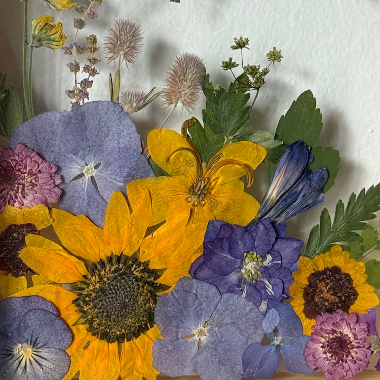 Použité květiny a rostliny jsou skutečné, ručně sbírané a šetrně lisované, aby si zachovaly svou přirozenou strukturu, jemnost i barevnost. 🌿 Následně jsou s citem aranžovány do jedinečné kompozice – každý obraz je originál, žádné dva kusy nejsou stejné.