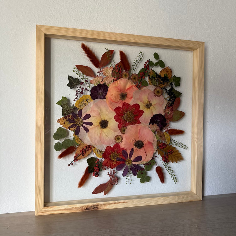 Přesně to jsou naše obrazy. Zakládáme si na originalitě a kvalitě, proto je každý náš obraz originál z pravých vylisovaných lokálních květů zarámovaných do ručně dělaných masivních dřevěných rámů.