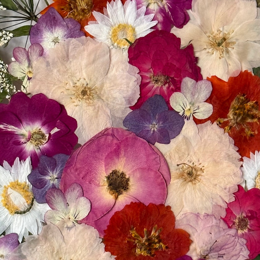 Použité květiny a rostliny jsou skutečné, ručně sbírané a šetrně lisované, aby si zachovaly svou přirozenou strukturu, jemnost i barevnost. 🌿 Následně jsou s citem aranžovány do jedinečné kompozice – každý obraz je originál, žádné dva kusy nejsou stejné.