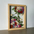 Květinový ručně vyrobený obraz s květy v červených, oranžových a růžových barvách, které rostou z rohů obrazu. Mezi květy najdete růže, ostrožky, třešně a mnoho dalšího.