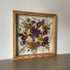 Květinový ručně vyrobený obraz s květy v růžových, žlutých a fialových barvách, které rostou ze středu obrazu. Mezi květy najdete měsíčky, růže, ostrožky a mnoho dalšího.