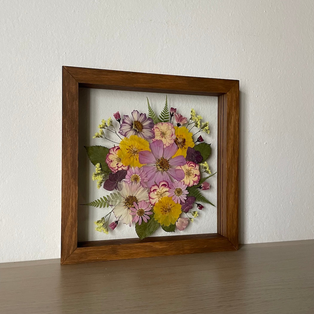 Přesně to jsou naše obrazy. Zakládáme si na originalitě a kvalitě, proto je každý náš obraz originál z pravých vylisovaných lokálních květů zarámovaných do ručně dělaných masivních dřevěných rámů.